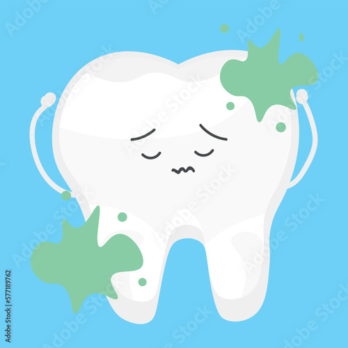 © Pixel-Shot, Fototapeta premium Sad dirty tooth on light blue background