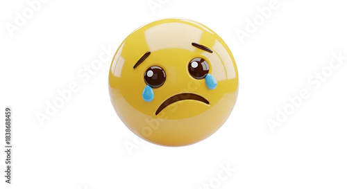 © Amran, Fototapeta premium Sad emoji with tears isolated on transparent background, expressing sadness