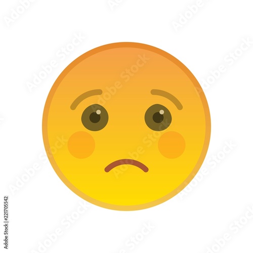 © Sunflower, Fototapeta premium Sad emoticon isolated on white background. Melancholy yellow emoji symbol. Social communication and internet chatting vector element. Sad smile face with facial expression in flat style.