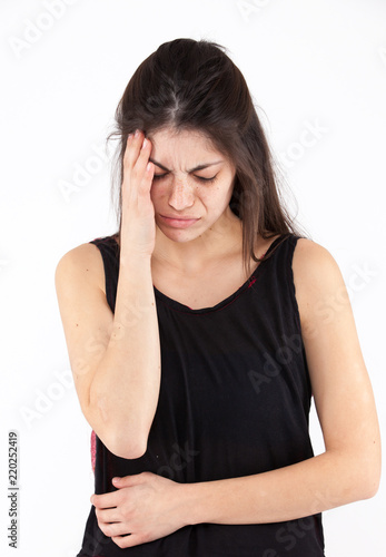© liandstudio, Fototapeta premium Sad emotional girl on a light background