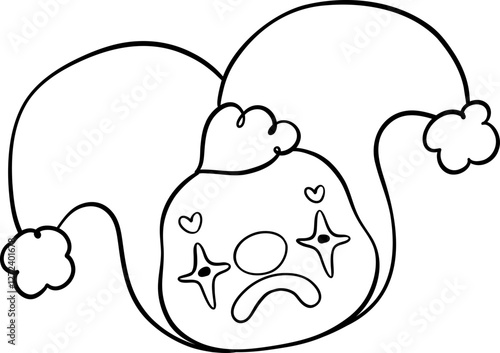 Fototapeta premium Sad Face Clown with Hat outline doodle hand drawn