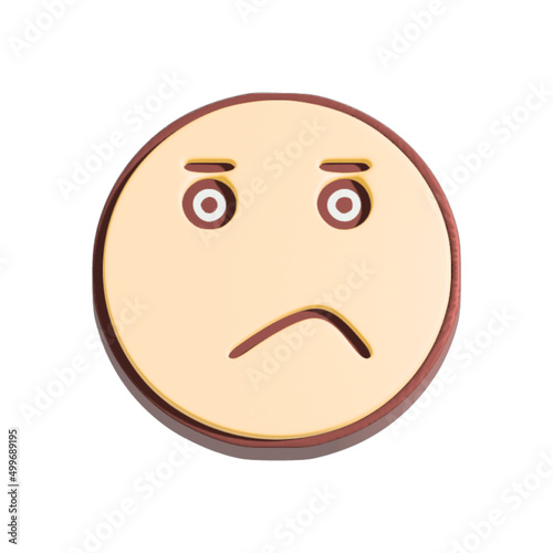 Fototapeta premium Sad face 3d illustration. Cartoon character isolated on white background.