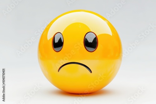 © GenBy, Fototapeta premium Sad face emoji in vibrant yellow against a clean white background.