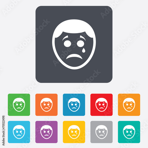 Fototapeta premium Sad face with tear sign icon. Crying symbol.