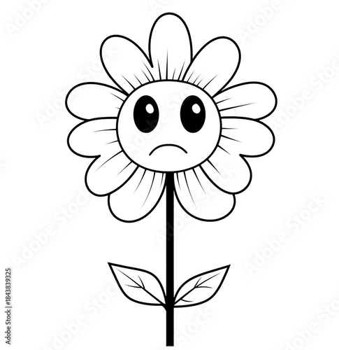 Obraz premium Sad Flower with Human-like Face, Simple Line Art, Transparent Background, Emotional Expression