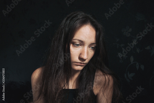 © zaizev, Fototapeta premium sad girl looking down