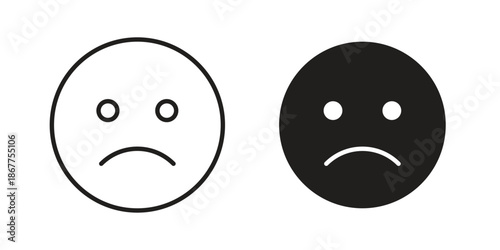 © iconic, Fototapeta premium Sad icons in line art and flat black clipart design style