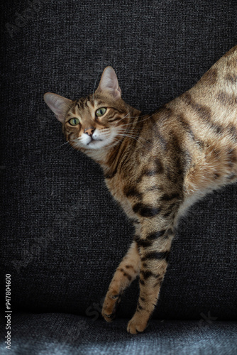 Obraz premium Sad lying cat, Bengal red tabby cat lying in the room, pet portrait,...