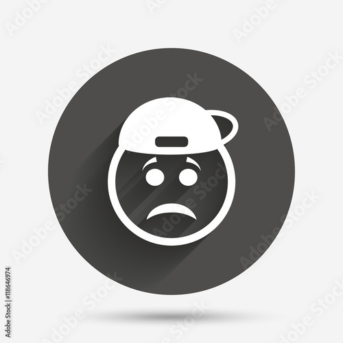 Naklejka premium Sad rapper face sign icon. Sadness symbol.