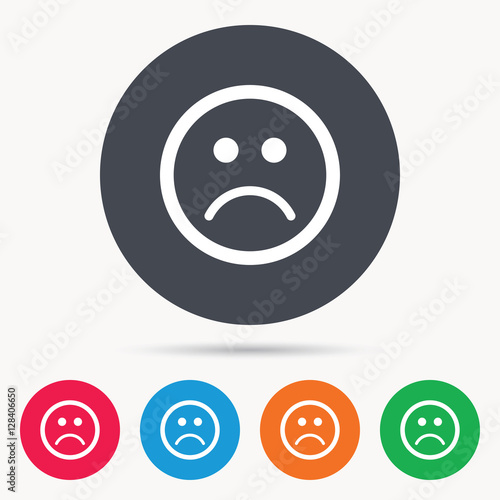 Fototapeta premium Sad smiley icon. Bad feedback symbol. Colored circle buttons with flat web...