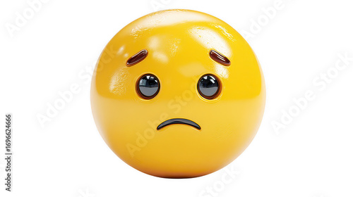 Fototapeta premium Sad yellow egg with big blue eyes and a downturned mouth on isolated background