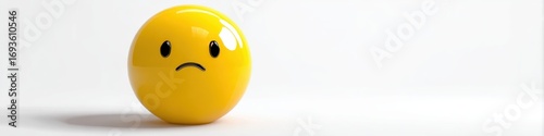 Fototapeta premium Sad Yellow Emoji Ball on White Background with Expression of Unhappiness