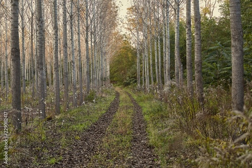 © Gudellaphoto, Fototapeta premium Sadzony las jesienią