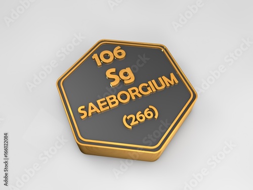 Obraz premium Saeborgium - Sg - chemical element periodic table hexagonal shape 3d render