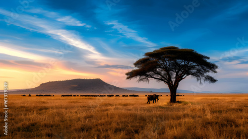 © Wagner, Obraz premium Safari Animals Gathering The African Landscape