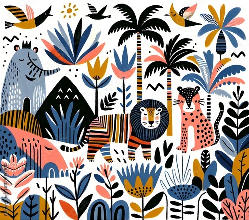 © PintaPali, Obraz premium "Safari de Colores: Vida Salvaje Ilustrada"
