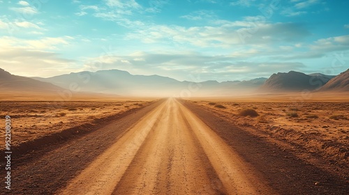 Fototapeta premium Safari Empty road through in the desert background : Generative AI