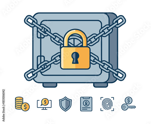 © ProVector, Obraz premium Safe box with chain and padlock securing money