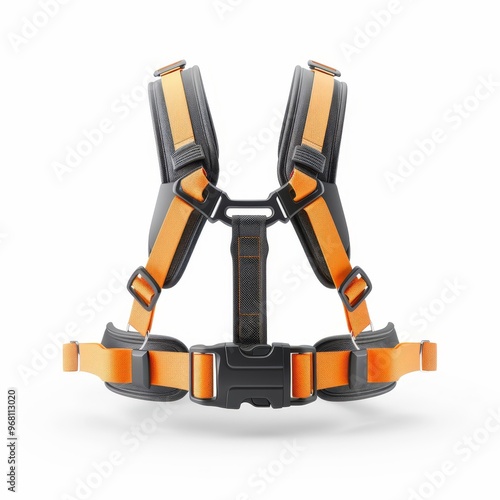© OZTOCOOL, Fototapeta premium Safety belt with chest strap, harness element, detailed 3D render, sturdy material, isolated on white background.