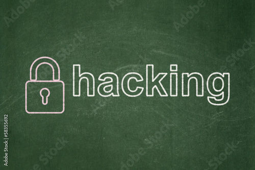 Fototapeta premium Safety concept: Closed Padlock and Hacking on chalkboard