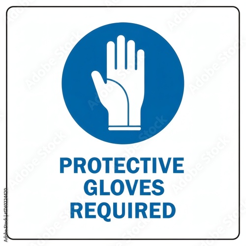 Obraz premium Safety first protective gloves required signage for workplace health and hygiene, emphasizing safety protocols and promoting a secure work environment