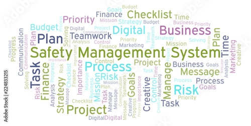 Obraz premium Safety Management System word cloud, made with text only.
