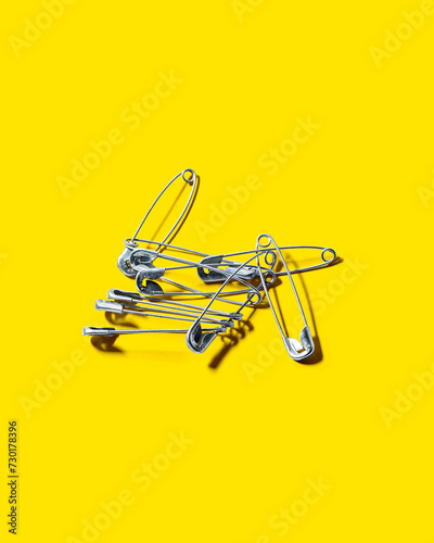 © Awais, Fototapeta premium Safety Pins on Yellow Background