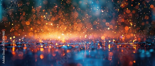 © ZeNDaY, Fototapeta premium safety_ratings)Glowing orange and blue lights on a dark background.