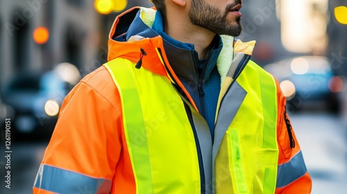© Murda, Obraz premium Safety vest bright colors urban setting