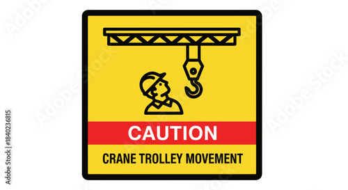 Fototapeta premium Safety Warning: Crane Operation Procedure with Overhead Trolley Movement Caution Sign