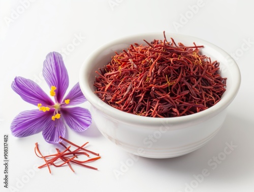 Fototapeta premium Saffron flower and white bowl best spice with aroma
