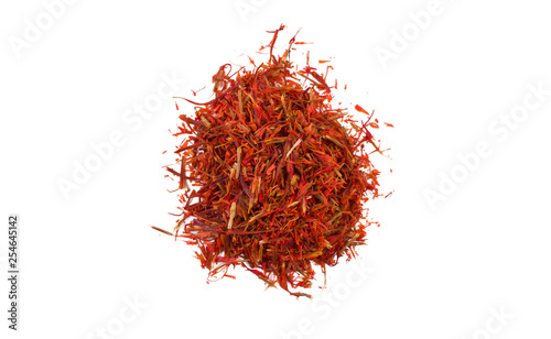 © eyecon, Naklejka premium saffron heap isolated on white background. top view