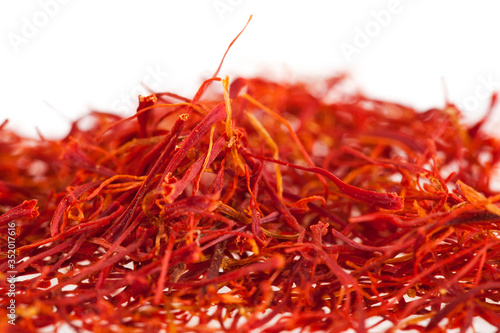 © Snowbelle, Naklejka premium Saffron heap on a white background.