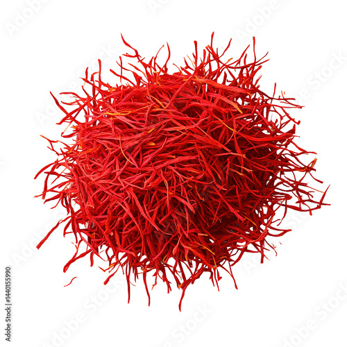 © Ferdoushi, Naklejka premium Saffron spice threads (strands) isolated on white background