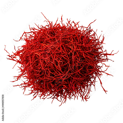 © Ferdoushi, Naklejka premium Saffron spice threads (strands) isolated on white background