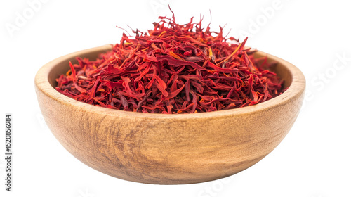 © Shakhayat, Fototapeta premium saffron thread in the wooden plate, isolated on the white background.