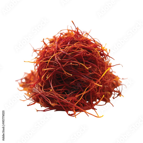 © Yuiziee, Naklejka premium Saffron Threads Bundle: Rich red saffron threads neatly bundled with a golden glow on transparent background