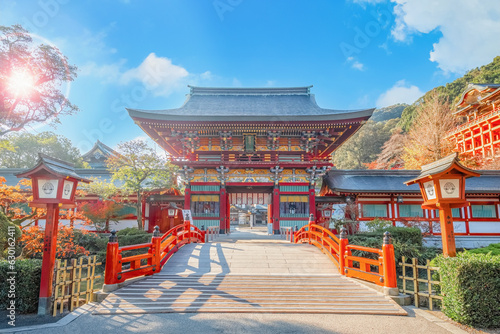 Naklejka premium Saga, Japan - Nov 28 2022: Yutoku Inari shrine in Kashima City, Saga Prefecture. It's one of Japan's top three shrines dedicated to Inari alongside Fushimi Inari in Kyoto and Toyokawa Inari in Aichi