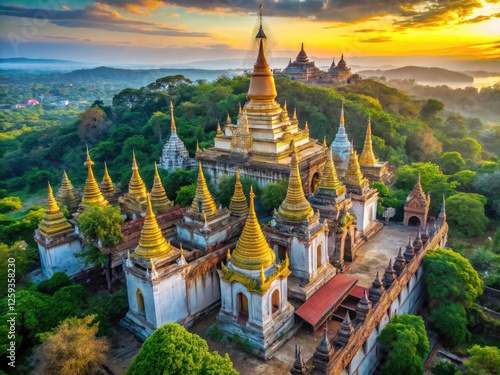 © ChannelPIC, Fototapeta premium Sagaing's U Min Thonze Temple: a captivating journey through ancient ruins, captured through urban exploration photography.