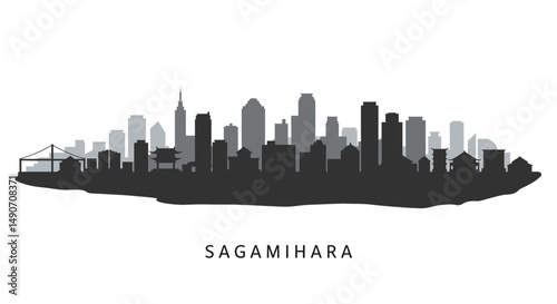 Naklejka premium Sagamihara Skyline Japan Cityscape Silhouette.