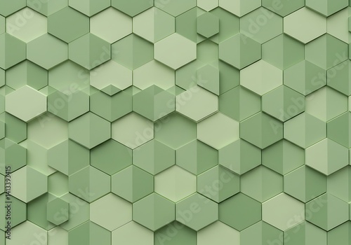 © Abdur rahim, Fototapeta premium Sage green hexagonal pattern creating a textured three dimensional surface look