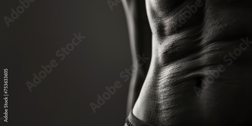 © SnowElf, Naklejka premium Sagging abdominal skin after weight loss. Close-up of abdomen with Fat folds, banner for plastic surgery clinic, skin tightening.
