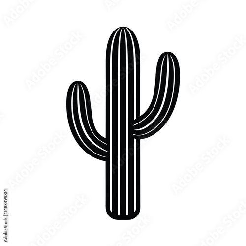 Obraz premium Saguaro Cactus Silhouette, Desert Plant, Black and White Icon