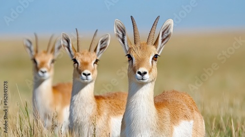 © Dee, Fototapeta premium Saiga Antelopes Roaming the Central Asian Steppes: Capturing the Beauty of an Endangered Species in Need of Conservation