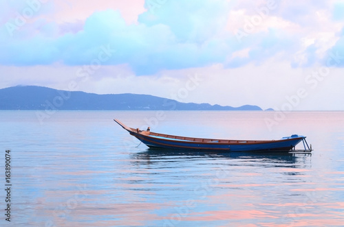 © yuliyatrukhan, Fototapeta premium Sail Boat at sunrise beautiful color sky