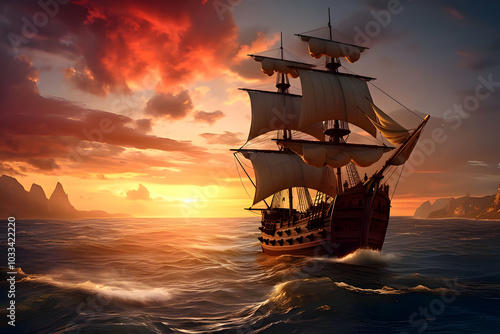 © 희원 조, Obraz premium sailboat at sunset. Generative AI