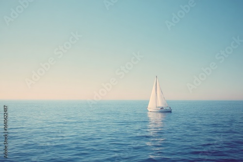 © Сергей Захаров, Fototapeta premium Sailboat gliding over calm waters under clear blue sky creates s