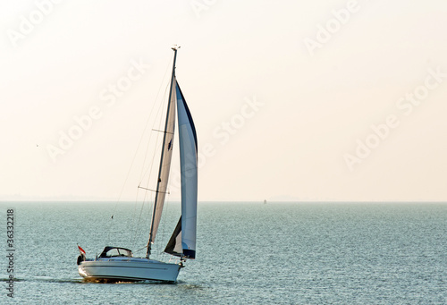 © Naj, Naklejka premium Sailboat on a lake at sunset, Holland