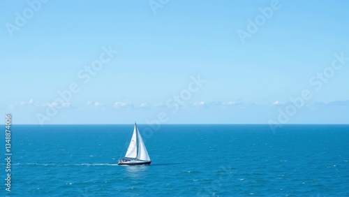 © sunflower24, Obraz premium Sailboat on Calm Blue Ocean