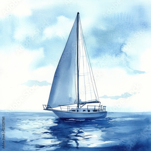 Fototapeta premium Sailboat on Calm Blue Water Under a Cloudy Sky